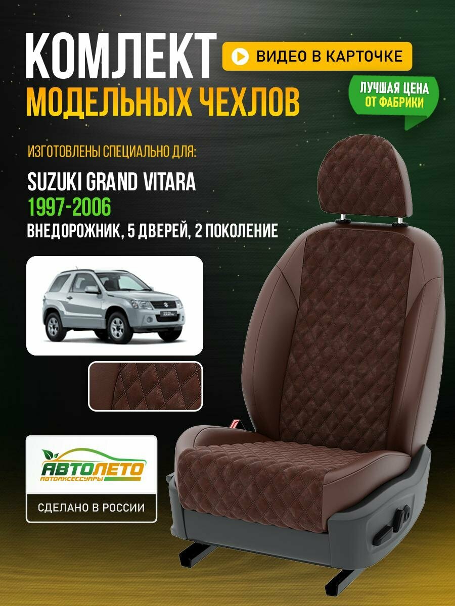 10 цен на Чехлы для Suzuki Grand Vitara 2 1997-2015 5 дверей Шоколадный Шоколадный Алькантара с ромбом Авто Лето LA281C14