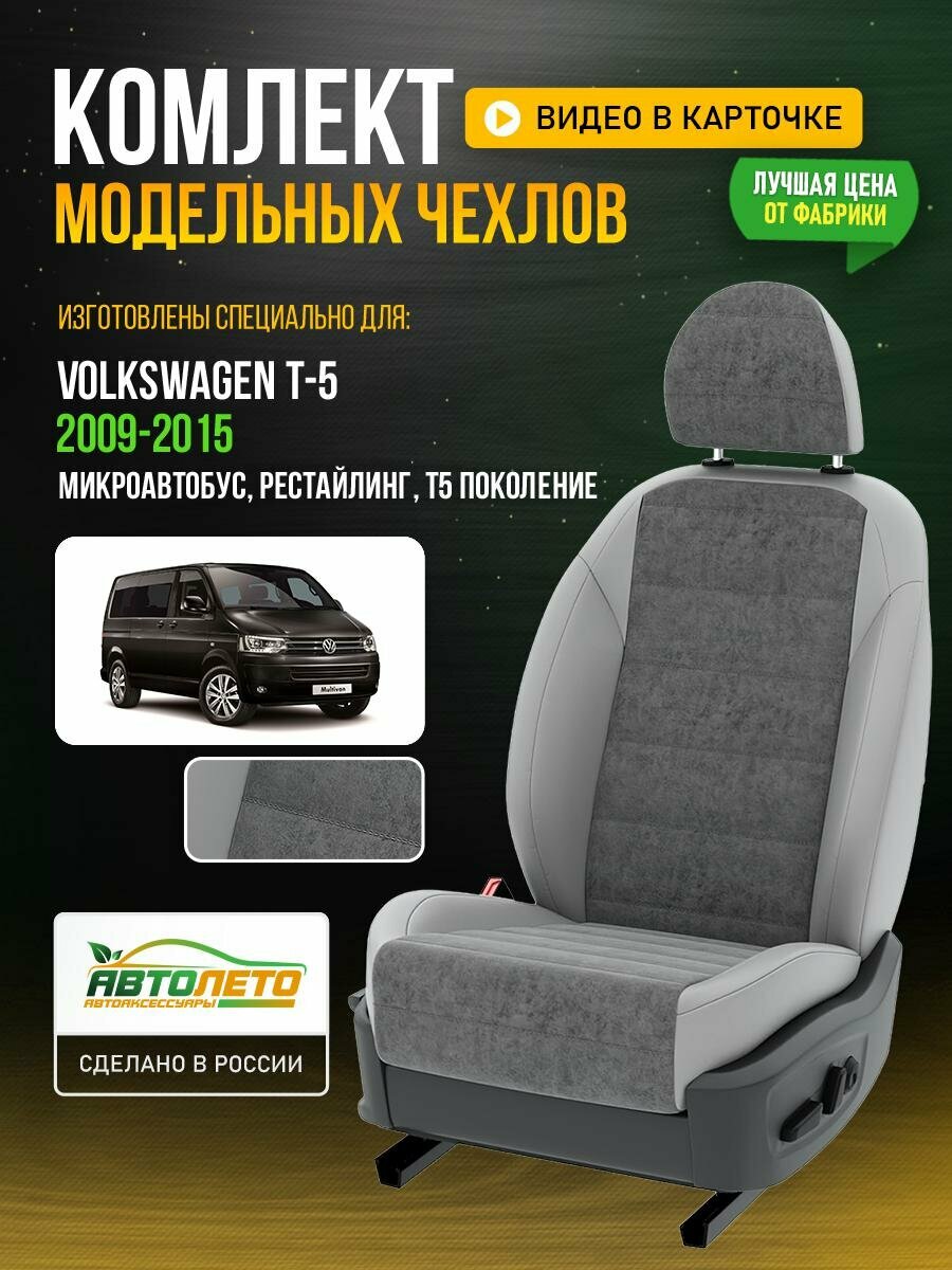 Чехлы для Volkswagen T-5 T5 рестайлинг 2003-2015 Серый Светло-Серый Алькантара Авто Лето LA137C15 информация: