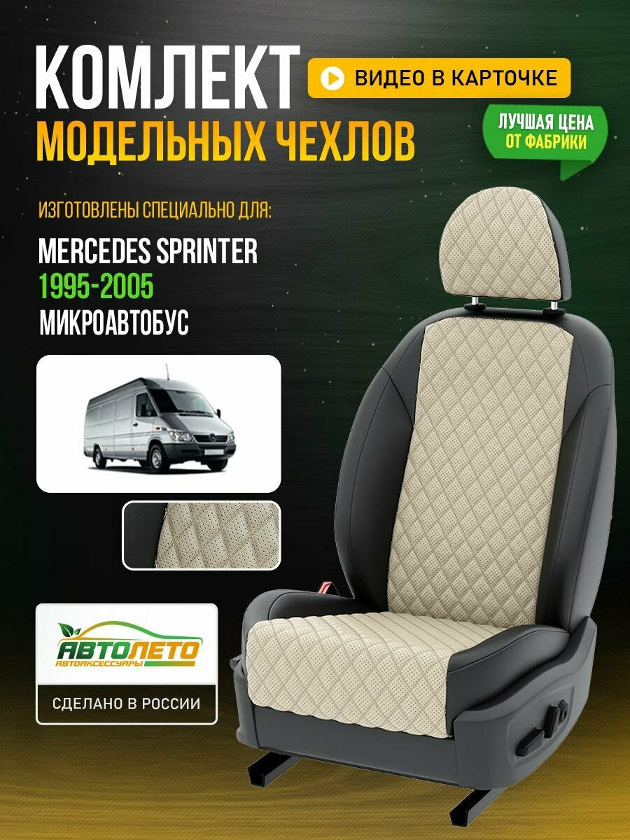 Отзывы на Чехлы для Mercedes Sprinter 1995-2019 Кремовый Черный Экокожа с ромбом Авто Лето LA551C102