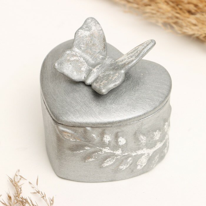 10 цен на Шкатулка "Бабочка на сердце" сталь с посеребрением, 8х10см, "Хорошие сувениры", цвет серый, материал полистоун