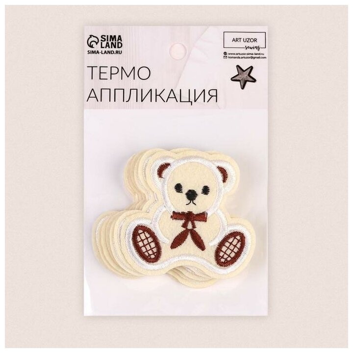 Термоаппликация «Мишка с бантиком», 5,5 × 6 см, цвет бежевый информация: