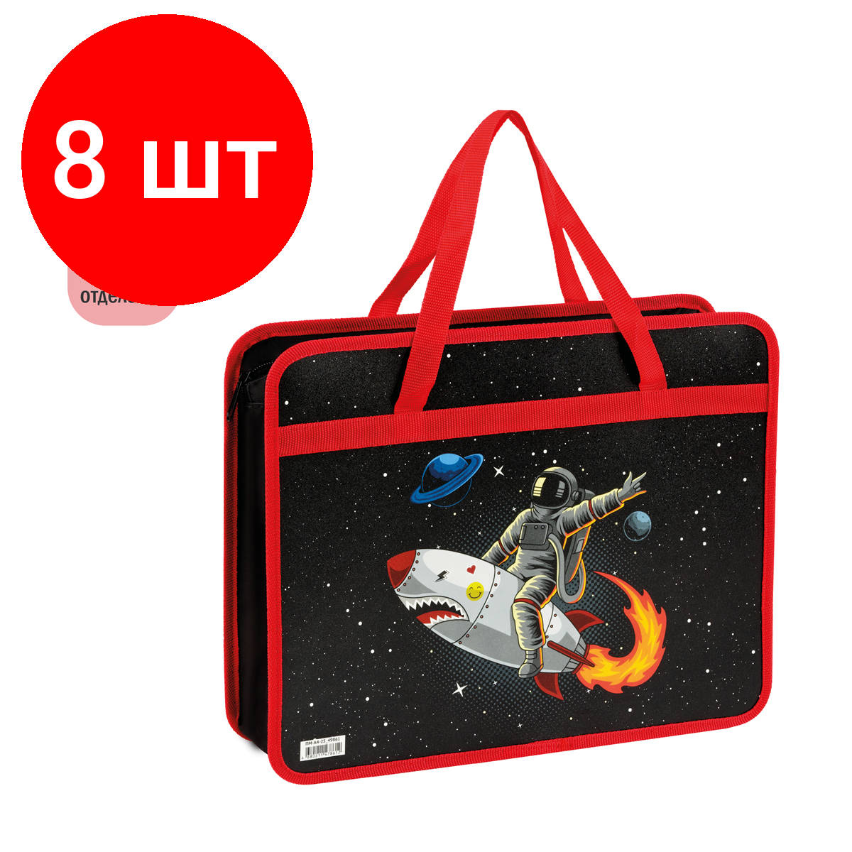 Комплект 8 шт, Папка с ручками А4 ArtSpace "Space adventure", пластик, на молнии, 80мм информация: