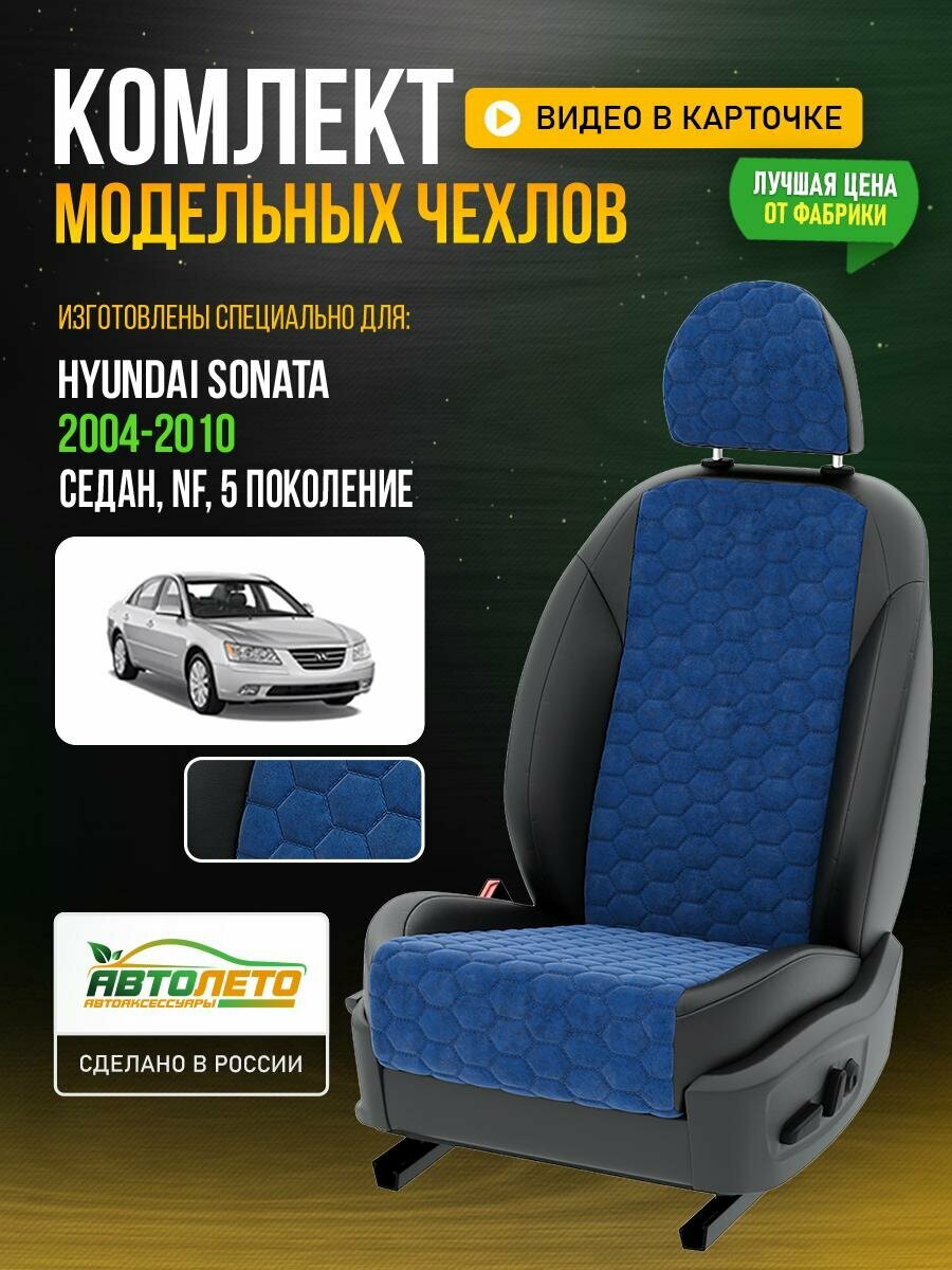 Отзывы на Чехлы для Hyundai Sonata 5 NF 1998-2019 Синий Черный Алькантара соты Авто Лето LA676C27