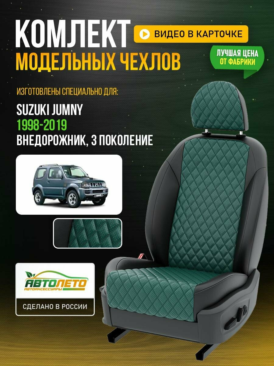 10 цен на Чехлы для Suzuki Jumny 3 1998-2020 Зеленый Черный Экокожа с ромбом и перфорацией Авто Лето LA280C100