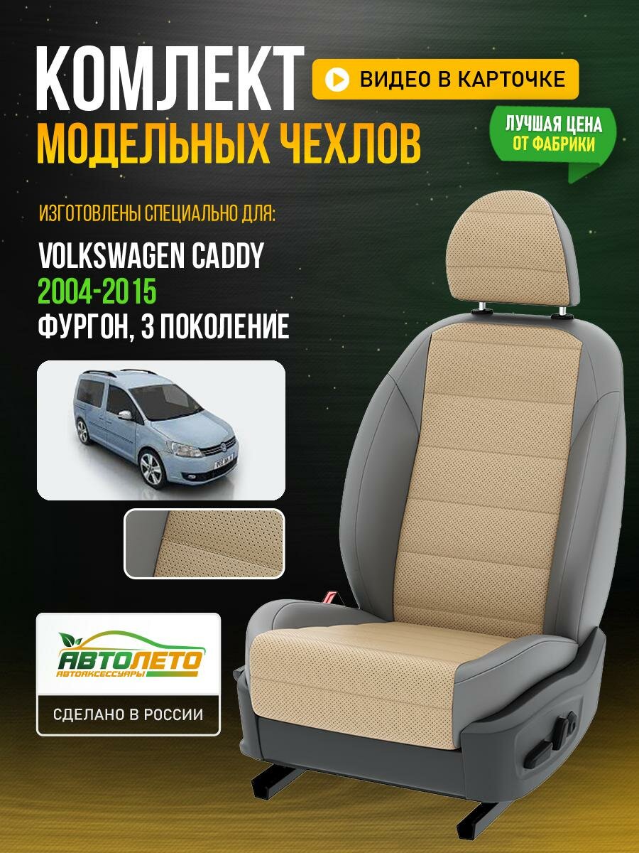 Чехлы для Volkswagen Caddy 3 2004-2020 Бежевый Серый Экокожа с перфорацией Авто Лето LA203C61 информация: