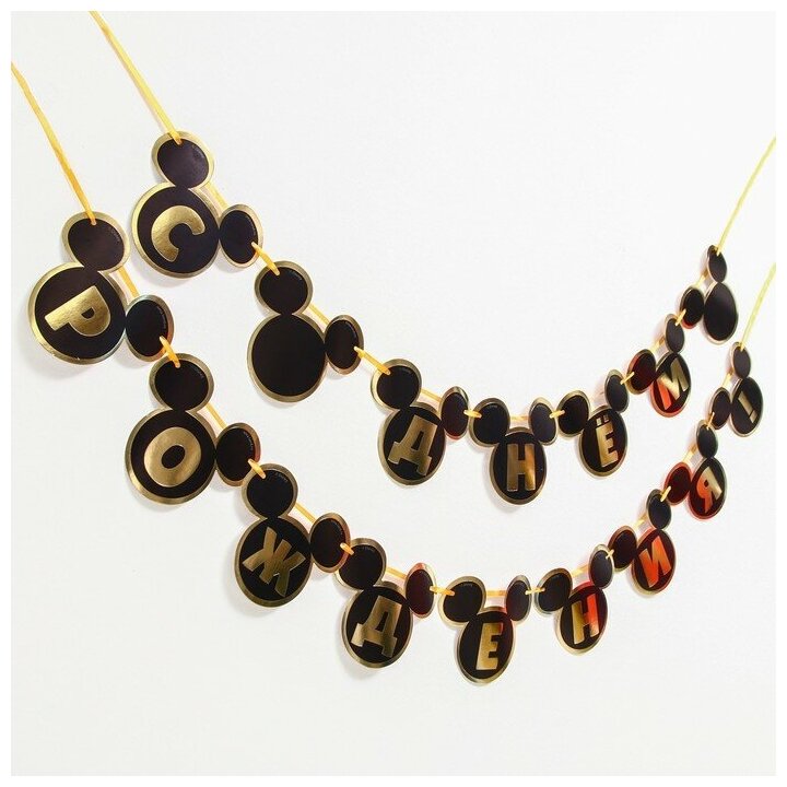 Отзывы на Гирлянда на ленте "С Днем Рождения" черно-золотая, 260 см, Микки Маус и его друзья