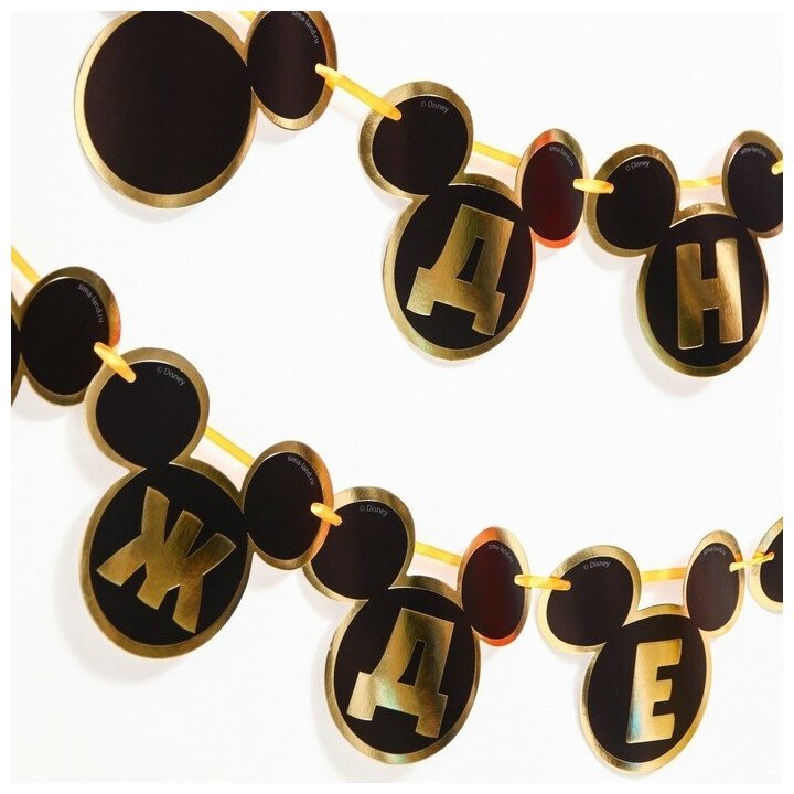 Гирлянда на ленте "С Днем Рождения" черно-золотая, 260 см, Микки Маус и его друзья информация: