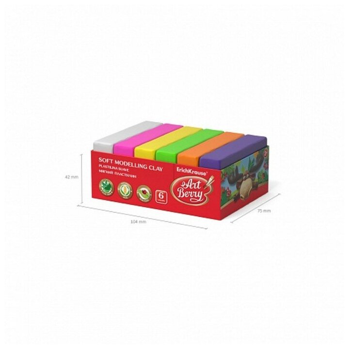 Пластилин мягкий (восковой), 6 цветов, 300 г, ErichKrause ArtBerry премиум, с Алоэ Вера, яркая палитра, картон информация:
