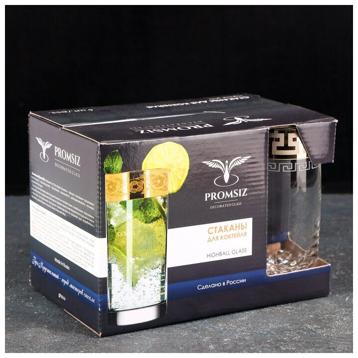 10 цен на Набор стаканов для сока «Греческий узор», 390 мл, 6 шт