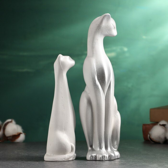 Отзывы на Хорошие сувениры Набор фигур "Кошки" белые в серебре, 11х23х6см