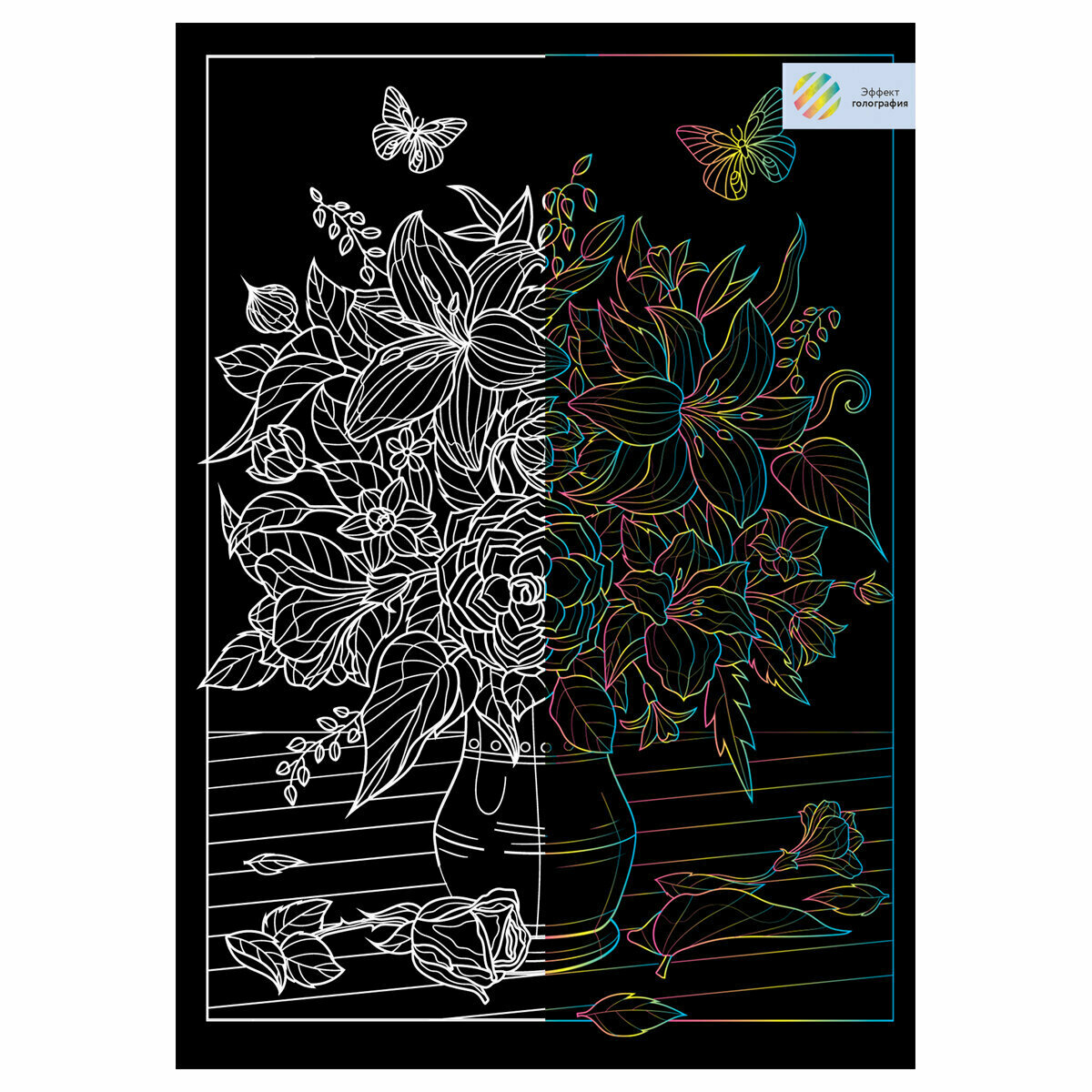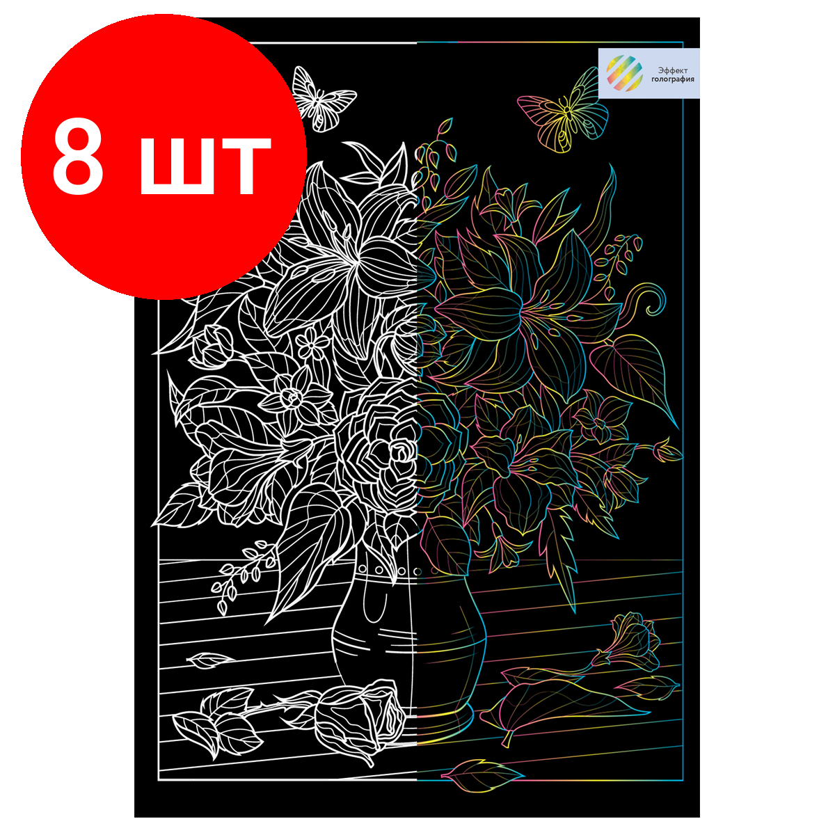 10 цен на Комплект 8 шт, Гравюра с голографическим эффектом ТРИ совы "Цветы", А4