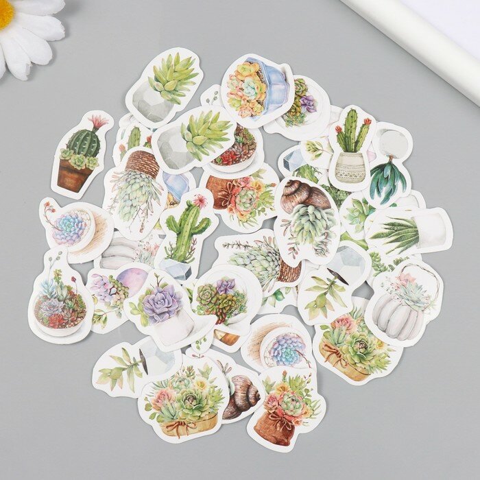 Наклейки для творчества "Кактусы в горшках" набор 46 шт 6,4х4,4х1,1 см, "Hidde", материал бумага информация: