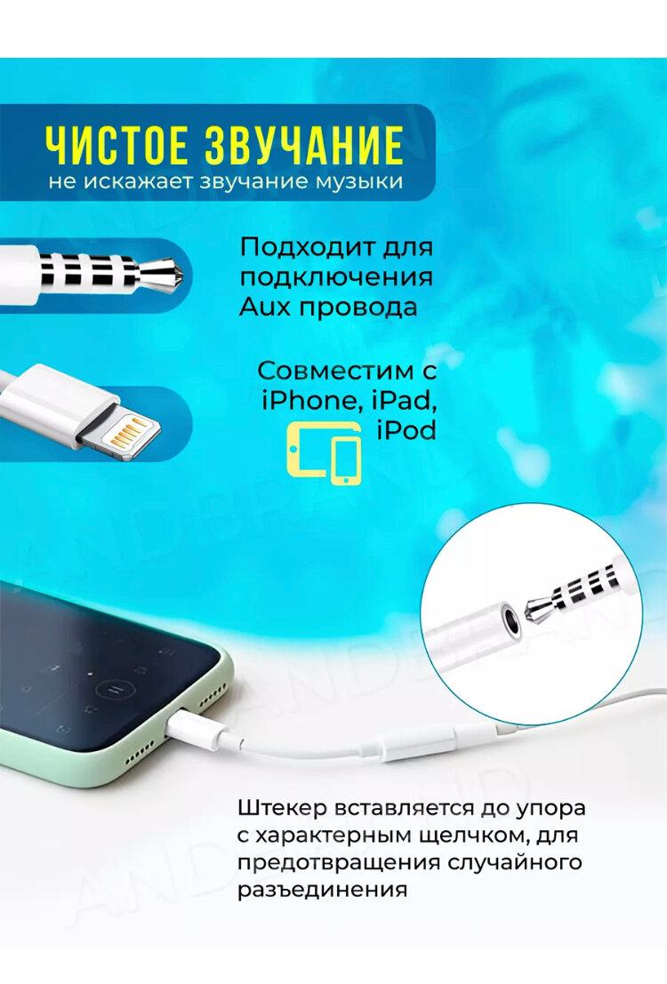 Переходник адаптер AUX mini Jack 3.5 мм - lightning, белый для Apple iPhone информация:
