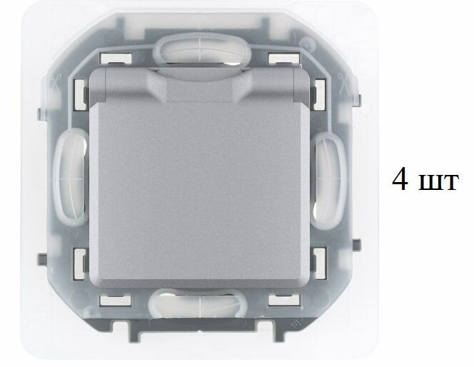 4 штуки Розетка одноместная с заземлением IP 44 с откидной крышкой и шторками 16А Legrand INSPIRIA алюминий информация: