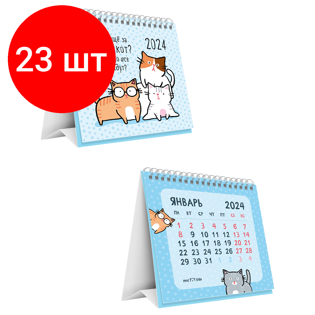 10 цен на Комплект 23 шт, Календарь-домик MESHU "Новый кот", на гребне, 2024г.