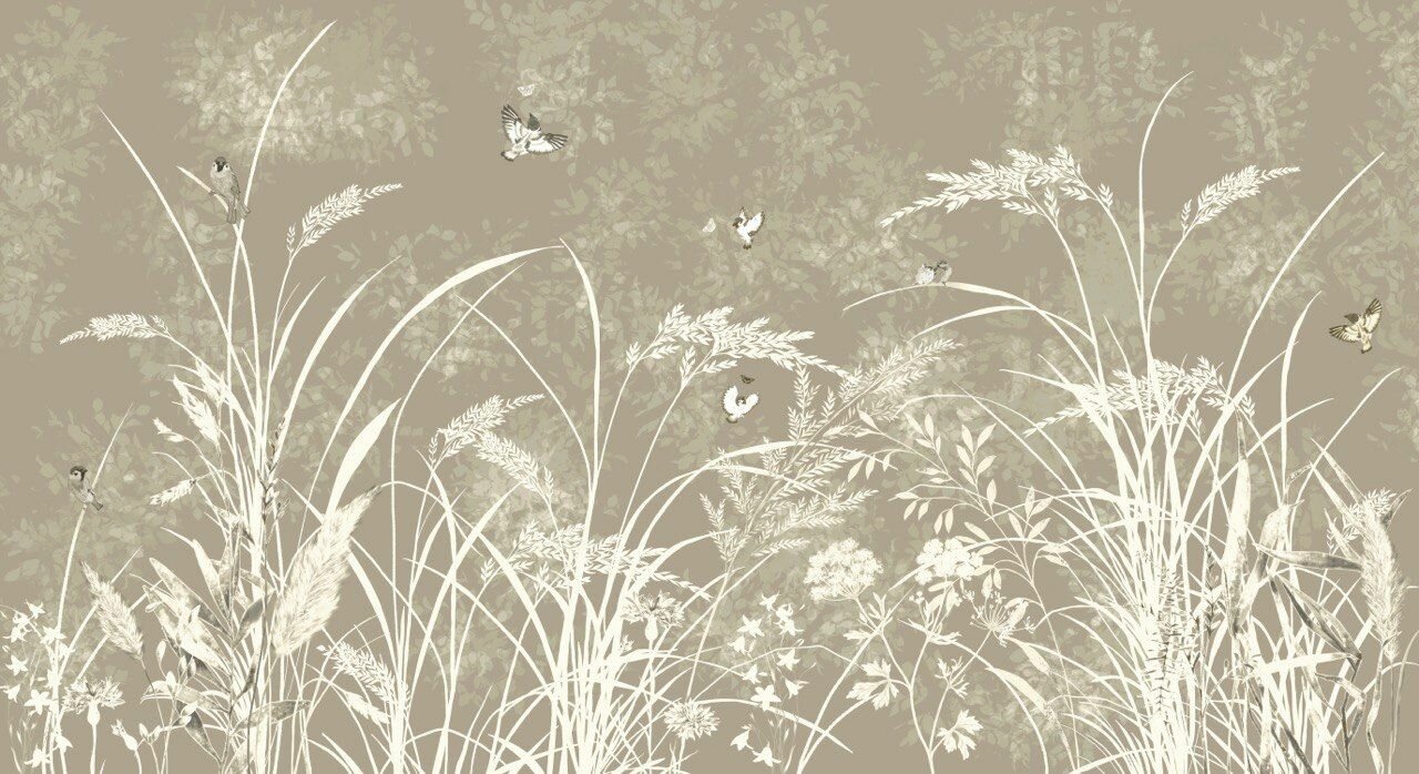 10 цен на Фреска бесшовная Летний сад воробьи бежевый монохром текстура листья (ширина 2550мм х длина 2500мм)