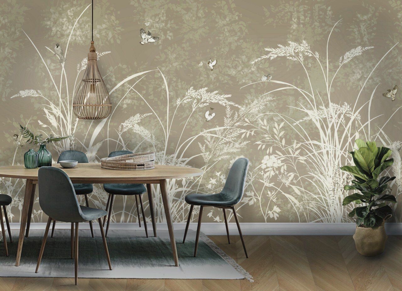 Отзывы на Фреска бесшовная Летний сад воробьи бежевый монохром текстура листья (ширина 2550мм х длина 2500мм)
