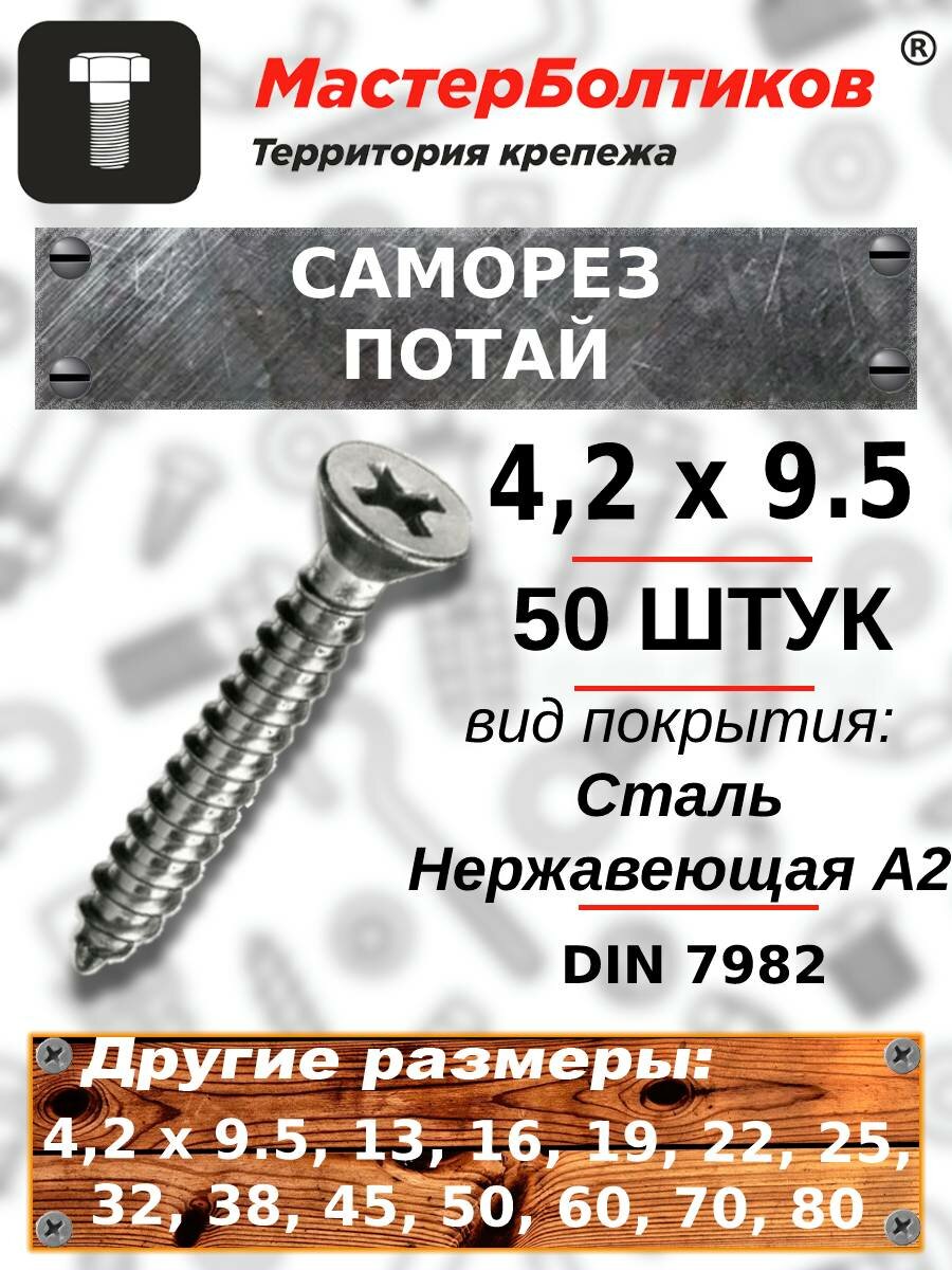 Саморез потай 4,2х 9,5 нержавеющий А2 DIN 7982 (50 штук) информация: