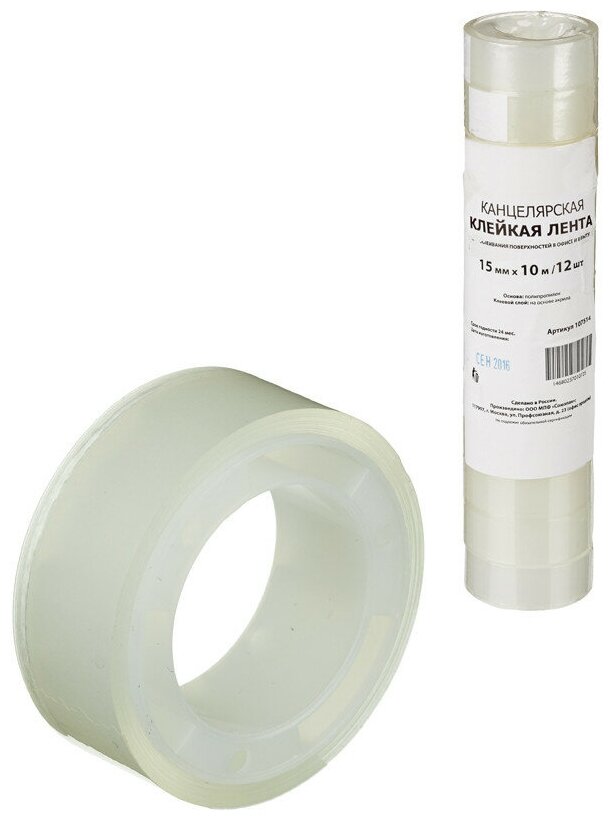 10 цен на Клейкая лента канцелярская 15х10 12 шт./уп.
