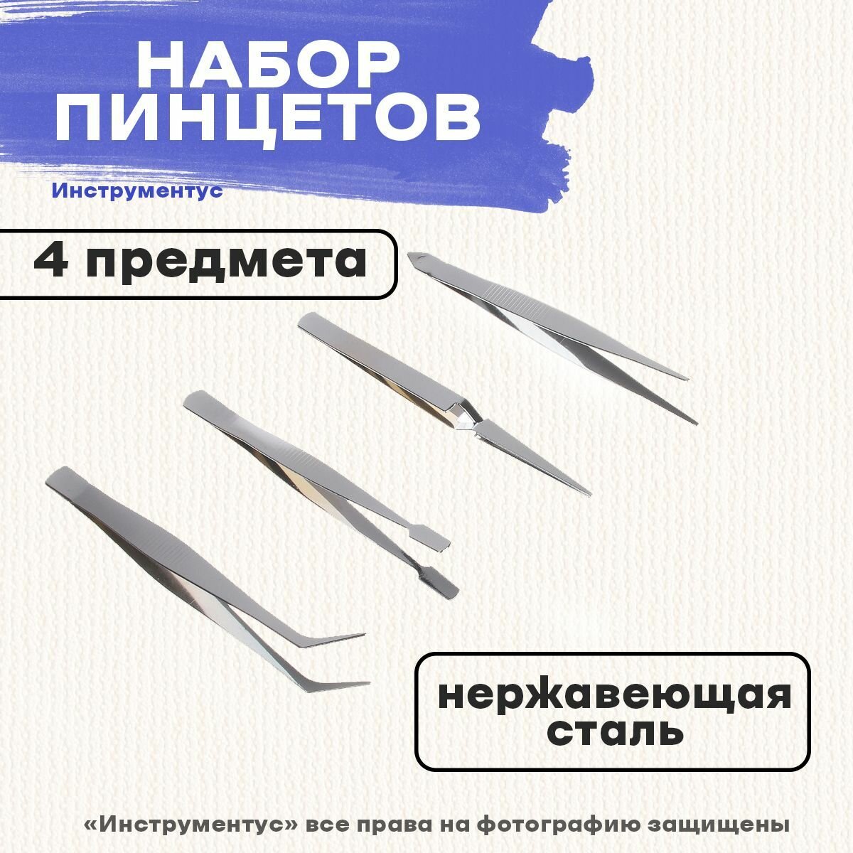 Набор пинцетов, 4 пр., нержавеющая сталь информация: