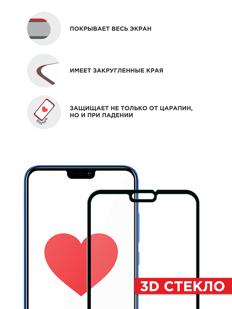 Отзывы на Противоударное закаленное защитное 3D стекло на Honor 8X / Хонор 8Х на весь экран