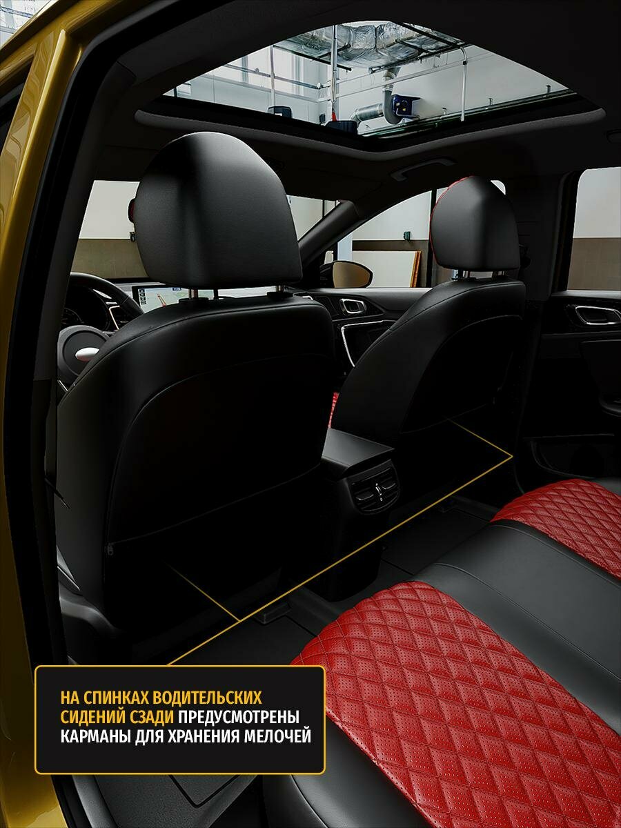 Чехлы для Volkswagen Sharan 1 1995-2020 Красный Черный Экокожа с ромбом Авто Лето LA167C101 информация: