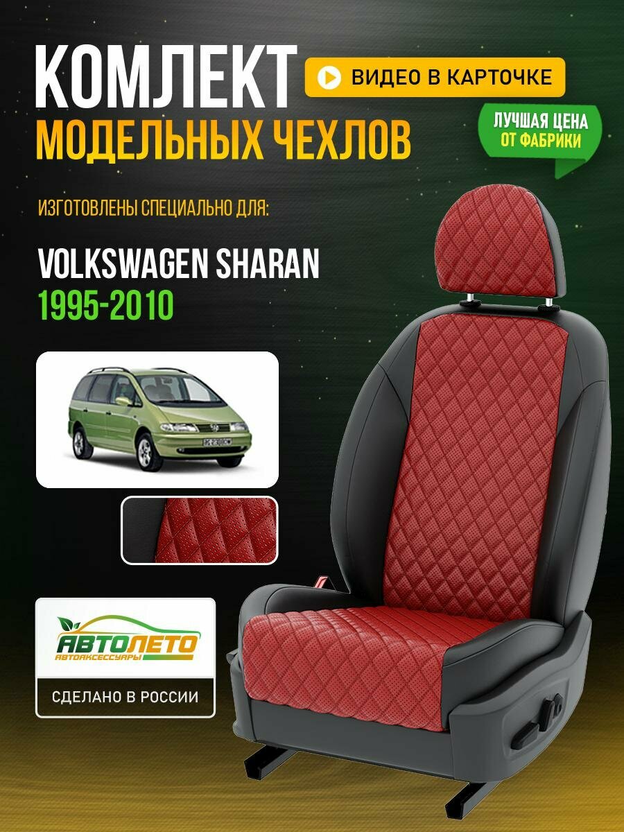 10 цен на Чехлы для Volkswagen Sharan 1 1995-2020 Красный Черный Экокожа с ромбом Авто Лето LA167C101