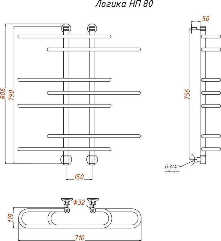 Полотенцесушитель Логика НП 80*60 (ЛЦ9)