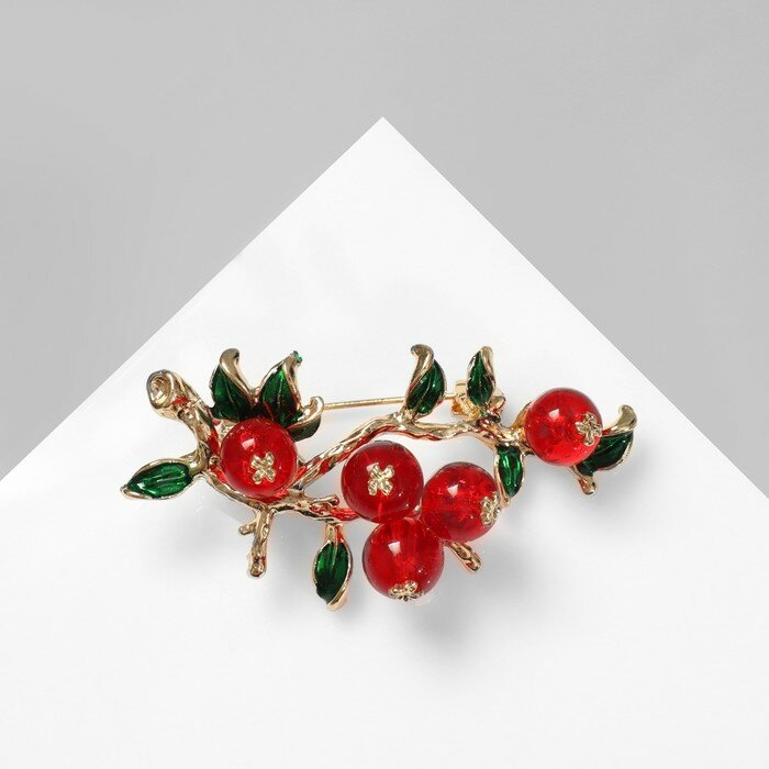 Отзывы на Брошь "Рябина" ягоды, цвет красно-зелёный в золоте, "Queen fair", цвет красный