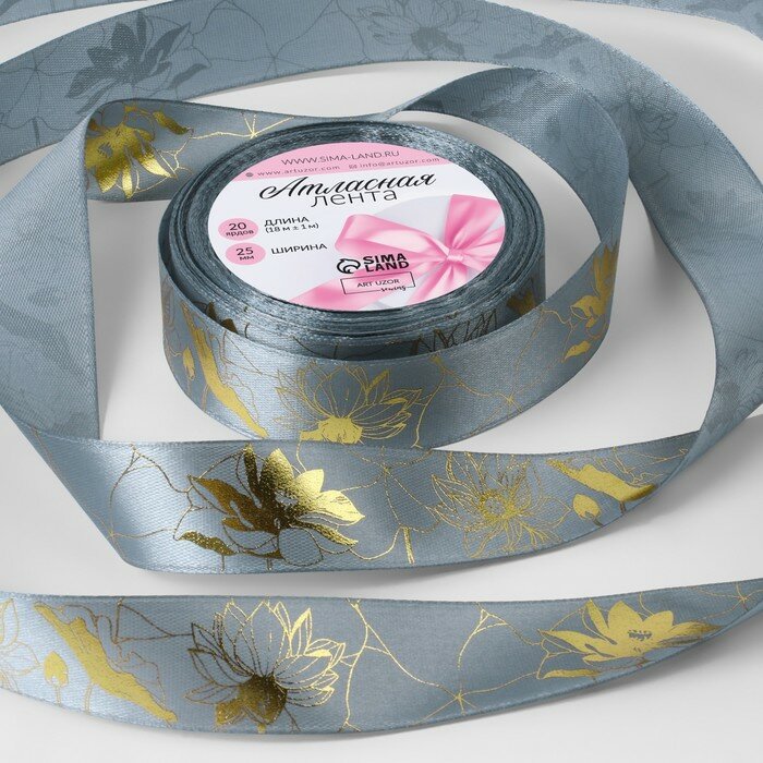 10 цен на Лента атласная с тиснением «Лотос», 25 мм × 18 ± 1 м, цвет тёмно-серый/золотой №189