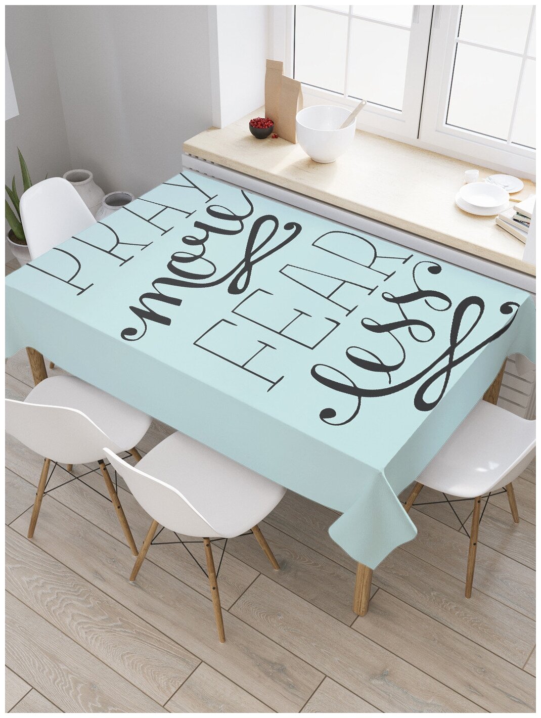 Скатерть прямоугольная JoyArty "Больше молись, меньше бойся" из сатена, 120x145 см информация: