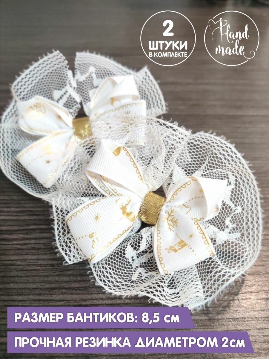 Новогодние бантики из фатина с золотым узором на репсовой ленте, 2 шт. информация: