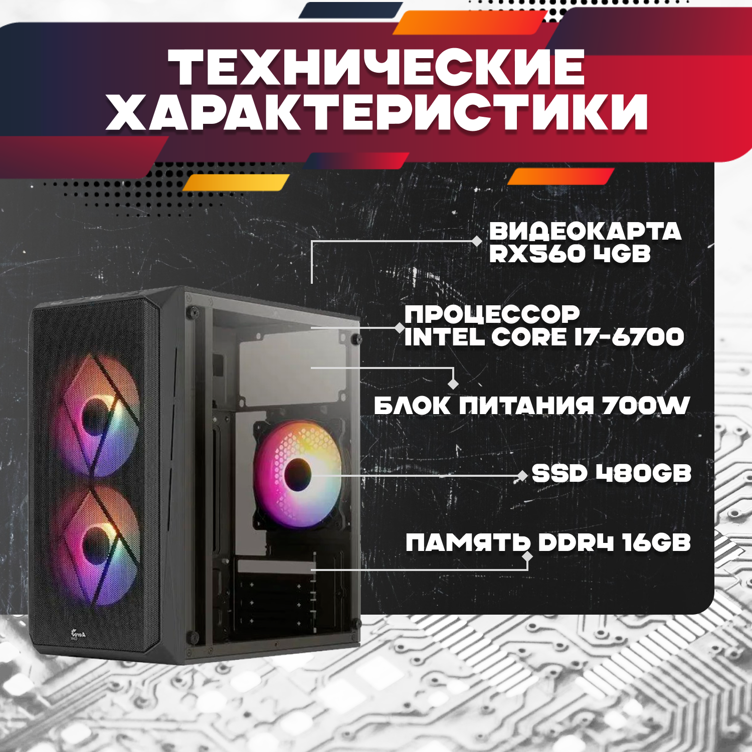 Игровой системный блок Intel Core I7-6700 RAM DDR4 16Gb/ SSD 480Gb/ RX560 4Gb информация: