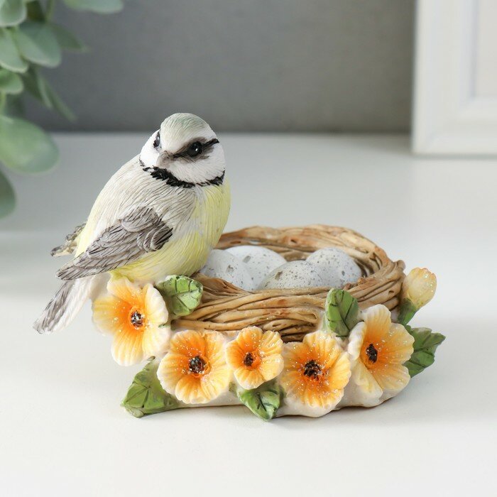 Сувенир полистоун "Синичка в гнезде, с цветами" 11х8х7 см, "Hidde", цвет разноцветный информация:
