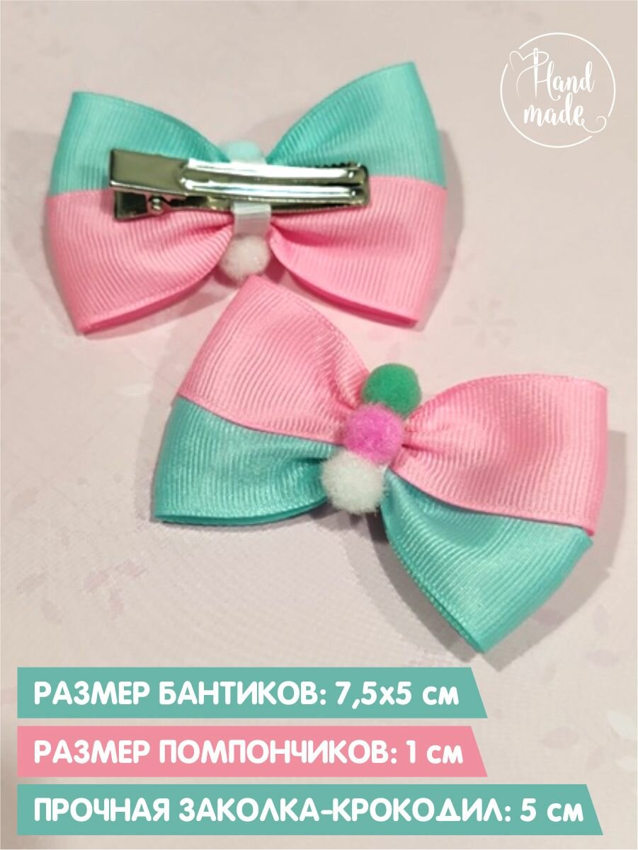 Заколки бантики розово-бирюзовые с помпончиками, 2 шт. информация: