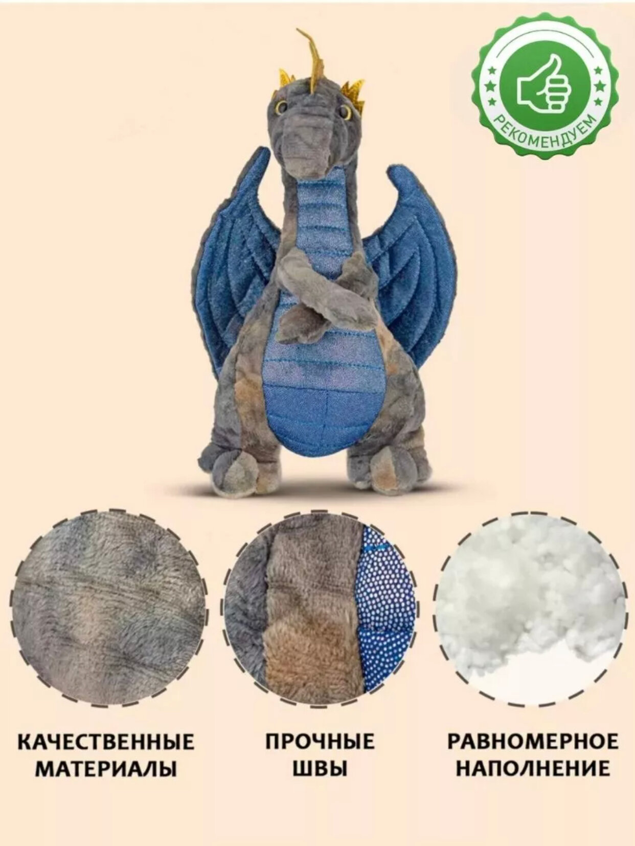Мягкая игрушка дракон серый символ года информация: