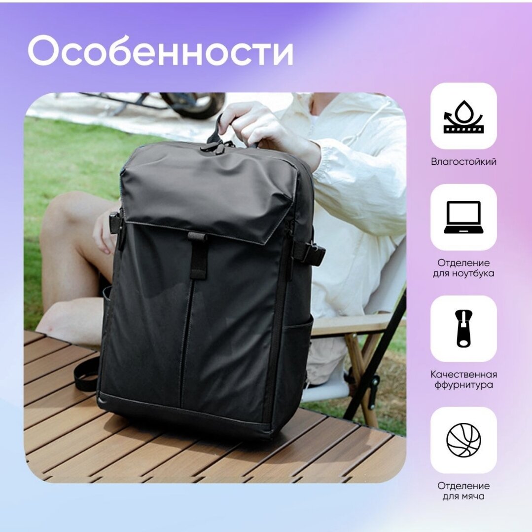 Отзывы на Рюкзак с карманом для шлема/мяча непромокаемый, спортивный, городской, для учебы/тренировок/прогулок/путешествий, черный, 46×13×27.5см