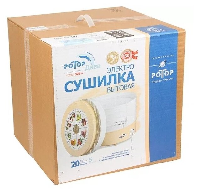 Сушилка для овощей и фруктов Ротор-Дива-Люкс 5 поддонов, электронное управление, цветная упаковка