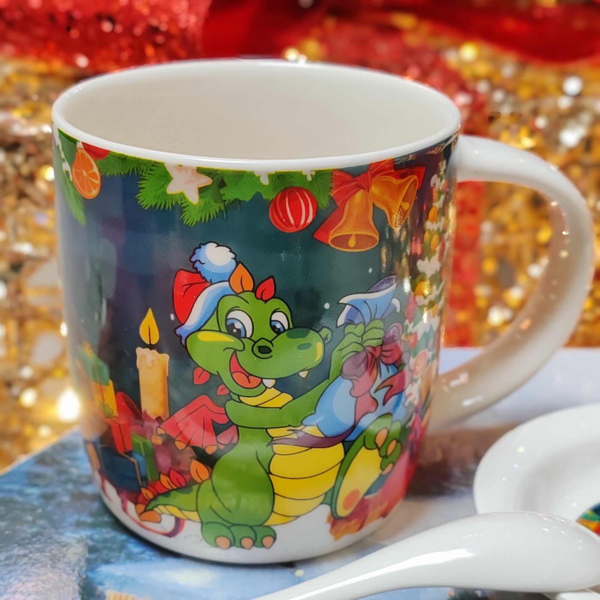 10 цен на Набор кружка ложка блюдце, с новым годом, дракон. В подарочной упаковке.
