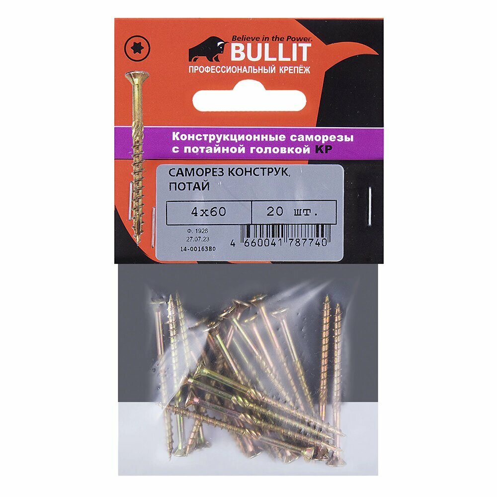 Шурупы конструкционные по дереву BULLIT потай 4x60 мм 20 шт информация: