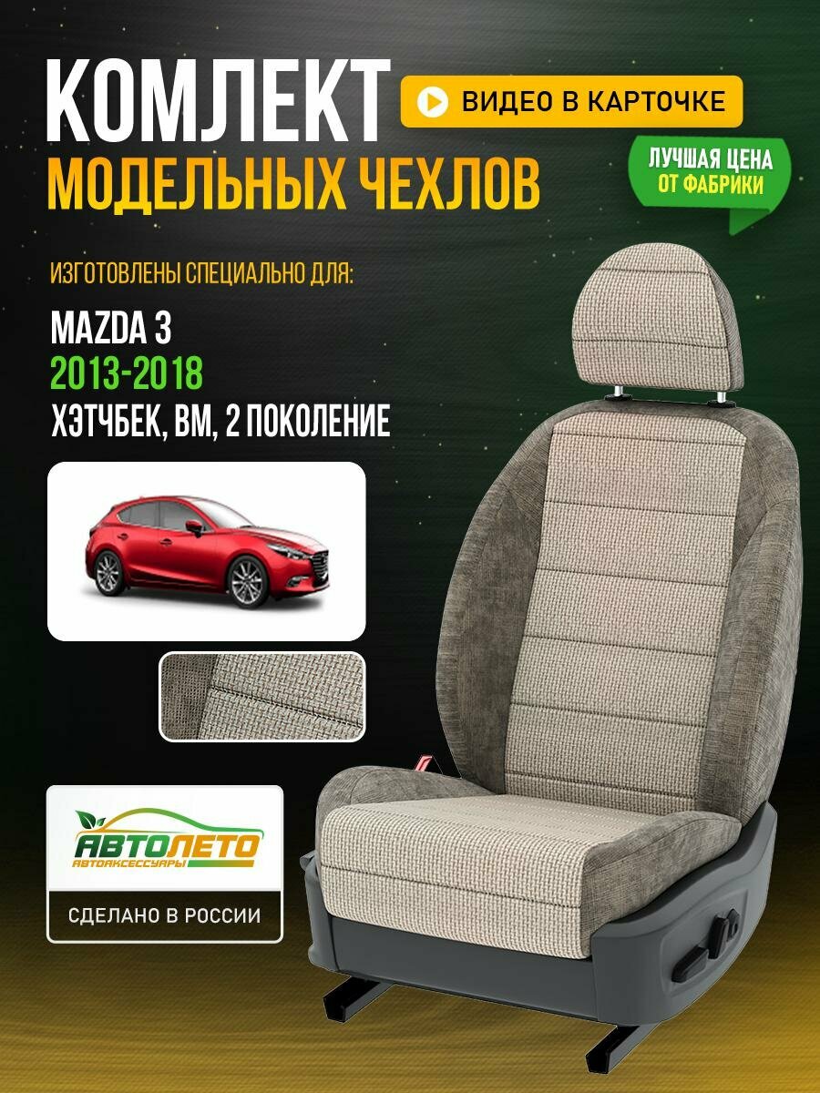 Отзывы на Чехлы для Mazda 3 2 BM 2003-2018 Шато-блеск Темный лен Лен Авто Лето LA586C57