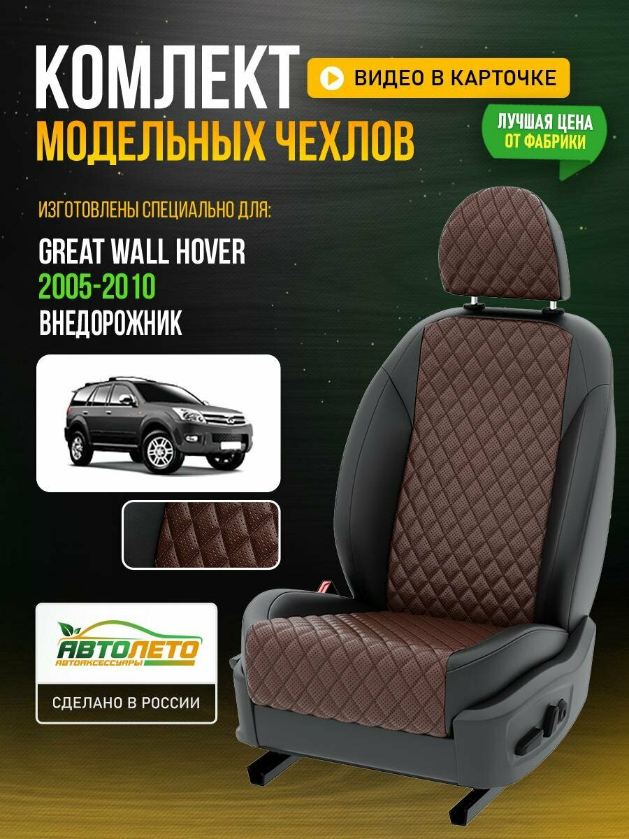 Чехлы для Great Wall Hover 1 2005-2017 Шоколадный Черный Экокожа с ромбом Авто Лето LA736C110 информация: