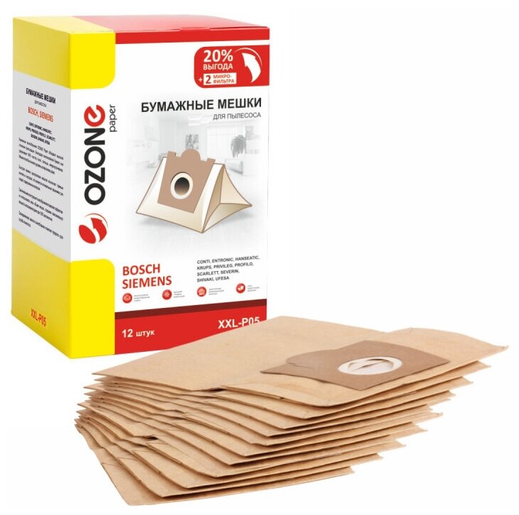 Мешки бумажные 12 шт + 2 микрофильтра для пылесоса BOSCH BSG61700 LOGO информация: