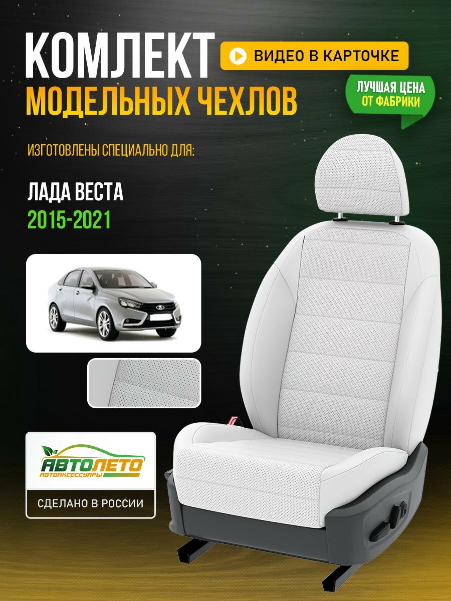 10 цен на Чехлы для LADA (ВАЗ) Веста 1 2015-2021 Белый Белый Экокожа с перфорацией Авто Лето LA619C62