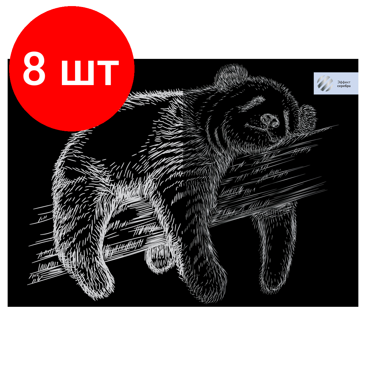 Комплект 8 шт, Гравюра с эффектом серебра ТРИ совы "Спящая панда", А4 информация: