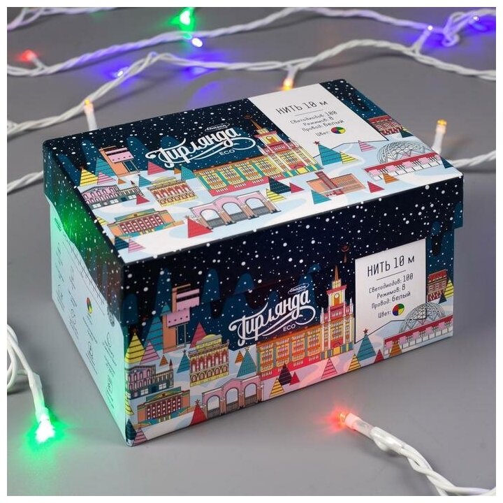 10 цен на Гирлянда «Нить» 10 м, IP44, белая нить, 100 LED, свечение мульти, 8 режимов, 220 В