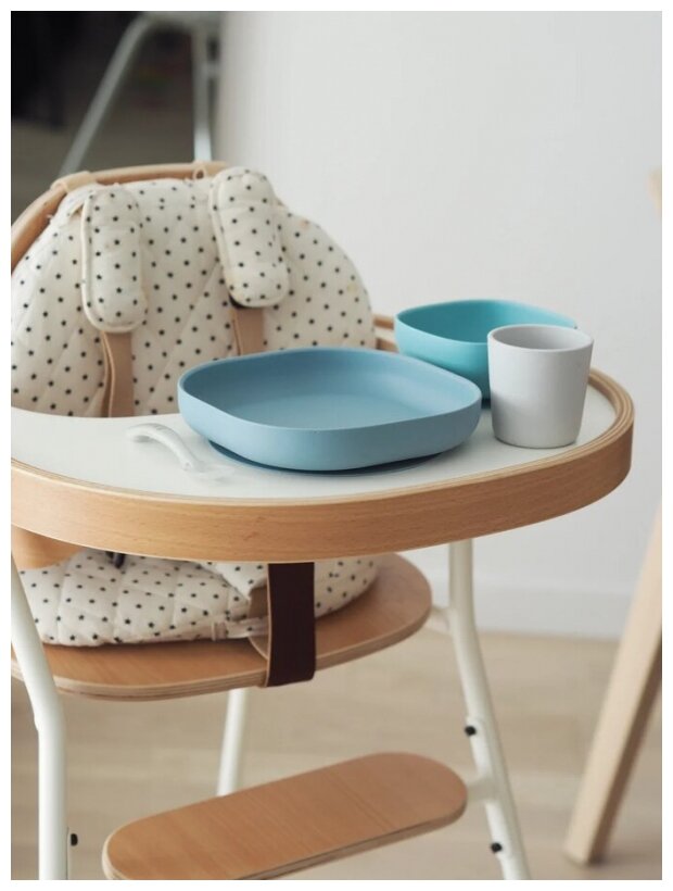 Набор силиконовой детской посуды BEABA: секционная тарелка на присоске, силиконовая кружка с ручками, ложка детская для кормления и прикорма