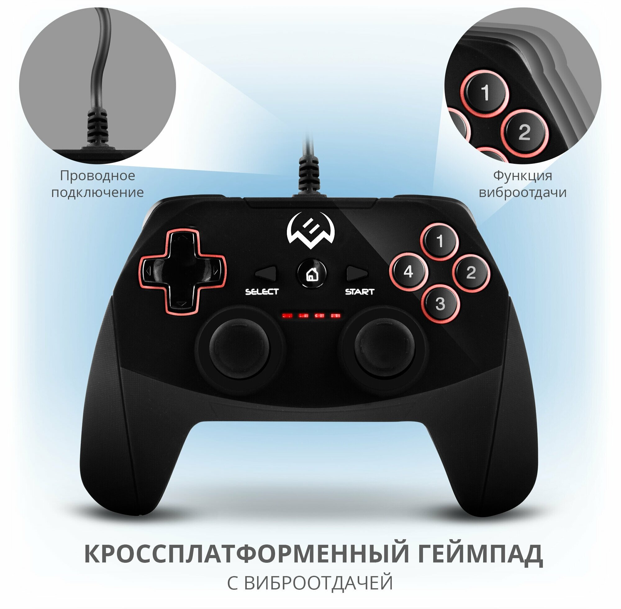 Геймпад для ПК, смартфона, PS3 SVEN GC-250, черный / джойстик игровой компьютерный, для ноутбука, телефона / PC / PS3 / Android / Xinput / контроллер для игр