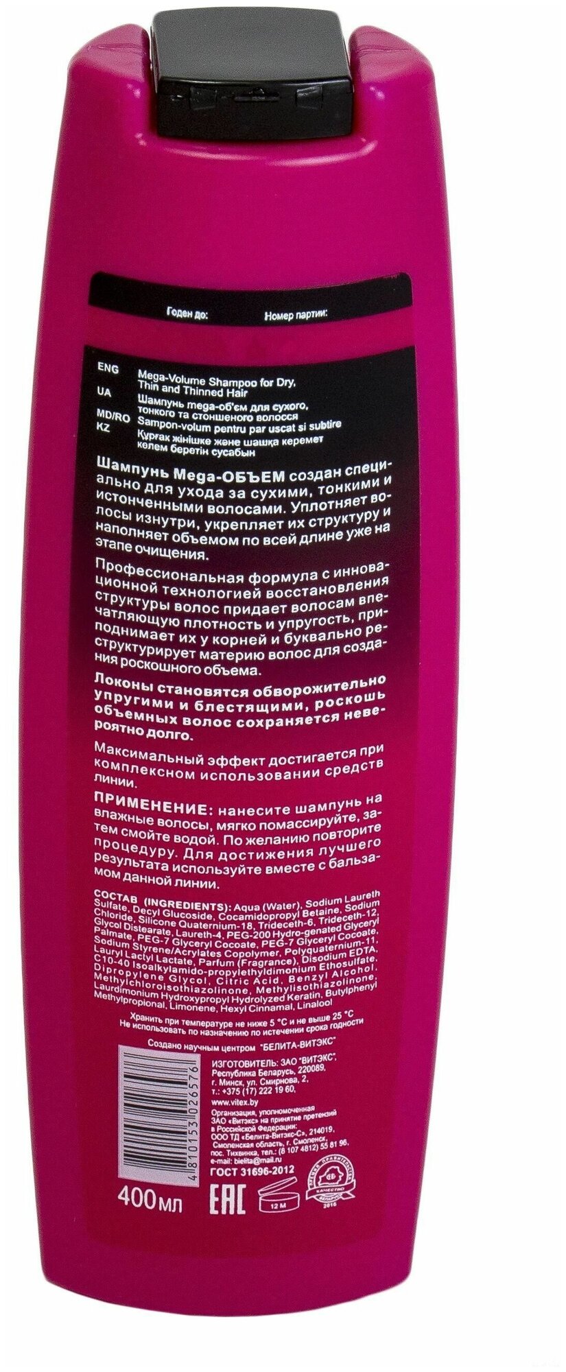 Витэкс шампунь для сухих и тонких волос lux volume роскошный объем mega-объем до 5 дней 400мл