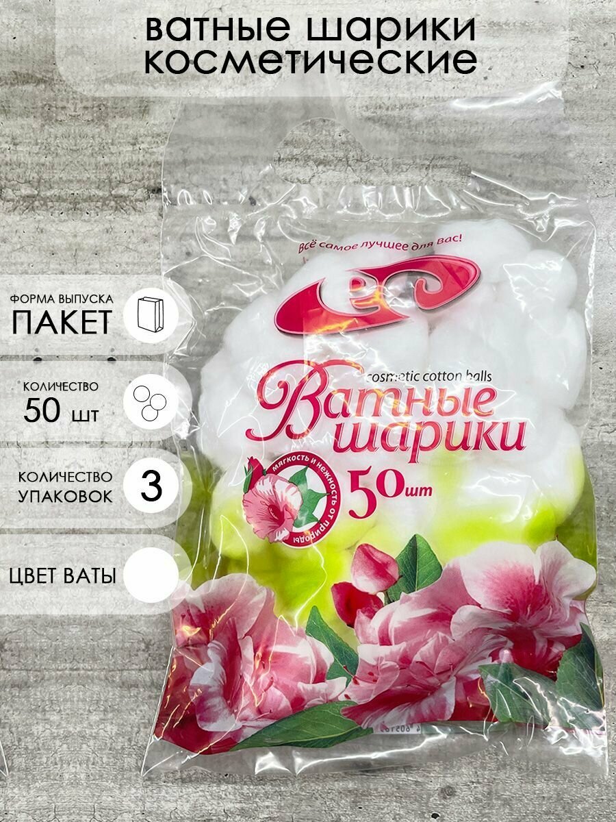 10 цен на KG000409 Белые шарики ватные косметические нестерильные, п/эт пакет 50шт